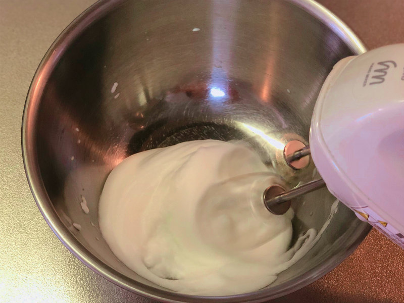 卵白1個分なので、若干泡立てにくいですけど、ボウルを斜めに傾けながらすると良いですよ。