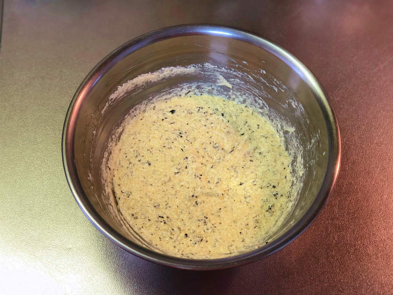 また、どうしてもバターが固い場合は、バターを結構小さめに切ってみると混ぜやすくなったり、ほんの数秒レンジでチンするとバターは柔らかくなります。