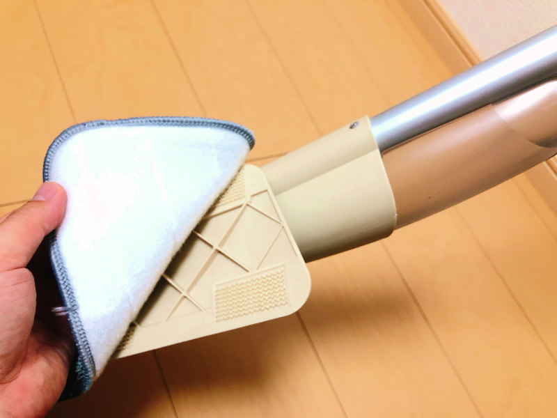 モップはマイクロファイバーで2枚セットで入っているし、バリバリっとくっつくタイプなので剥がれにくくなっています。