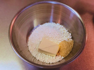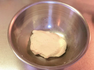 最初に、水以外の材料をボウルに入れておき、水を少しずつ入れながら耳たぶぐらいの柔らかさになるまで、コネコネします。