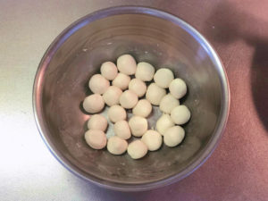 冷水をボウルに用意しといて、その中に茹で上がって浮いてきた団子を入れ、冷まします。