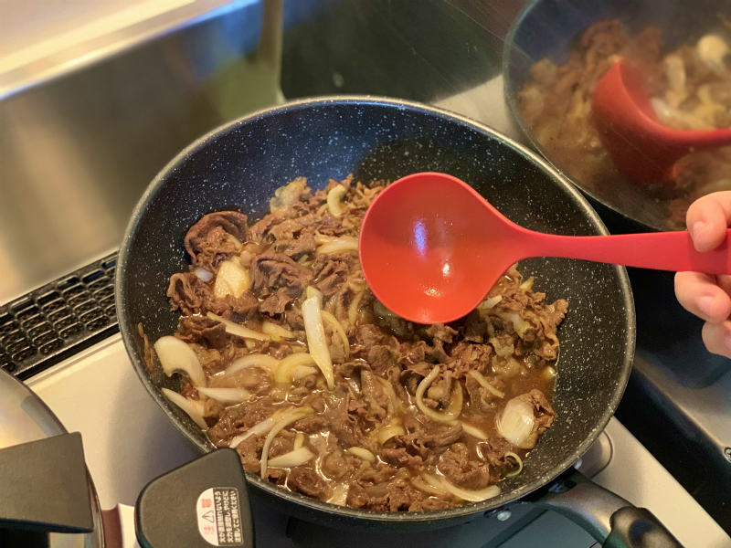 お肉はこま切れですでに小さくなっているのでまずは煮汁から作っていきます。
