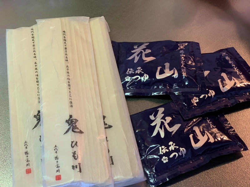 パッケージから取り出した「鬼ひも川」と「花山うどん謹製の伝承つゆ」