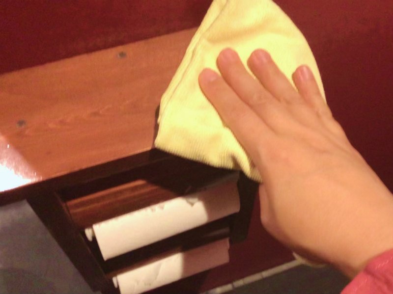扉や手が触れそうなペーパーホルダーや扉といった部分は、重曹水やアルカリ電解水で汚れを落とし、除菌までするとさらに清潔になります。