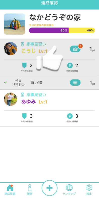 お互いにした家事を記録していけば、履歴として残っていきます。