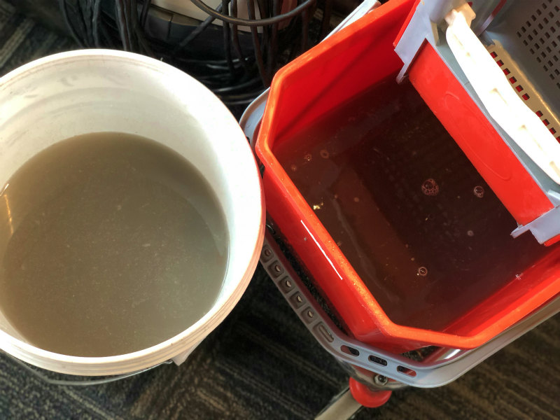 カーペットを洗浄したあとに回収した汚水はこんなにも黒く濁っています。