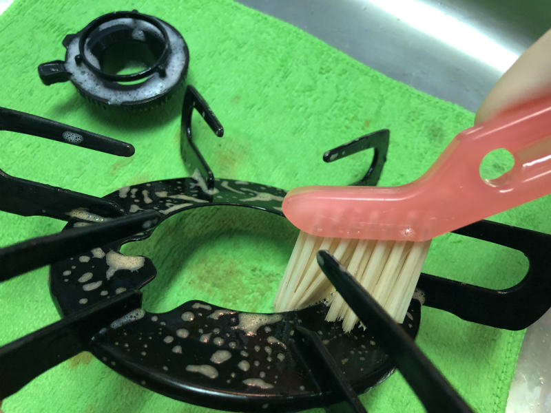 コンロの五徳とか、油汚れやコゲも結構しつこく付いていて落としにくいので、