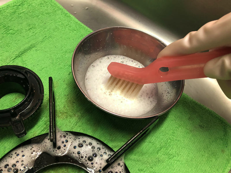 なので、時間が経ってからブラシでこするなら、もう一度ブラシの毛先に洗剤を付けながらこすってみると汚れをさらに落としやすくなります。