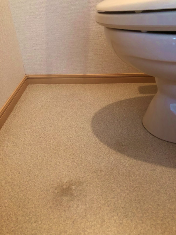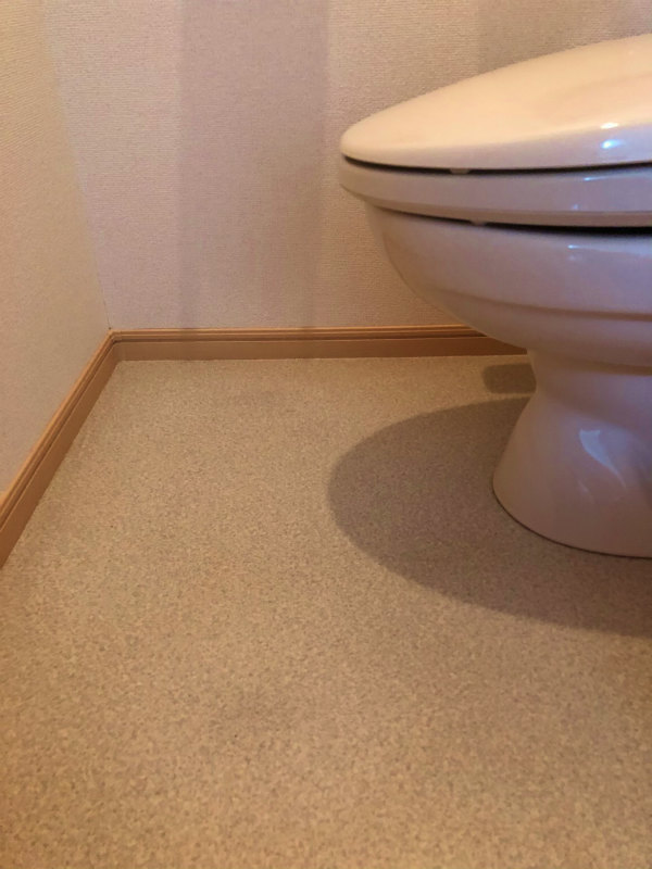 【ビフォー】トイレの床についた黒い皮脂汚れもアルカリ電解水「クリアシュシュ」を吹きかけてクロスで拭き取っただけで