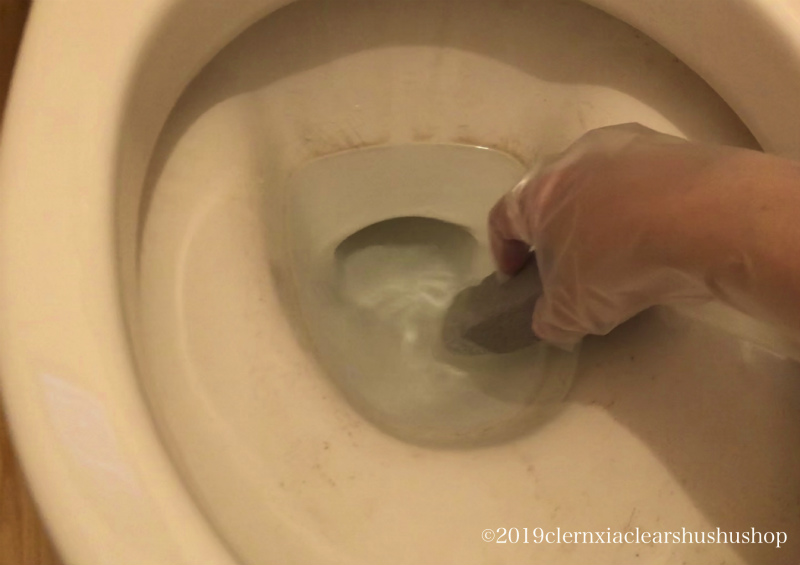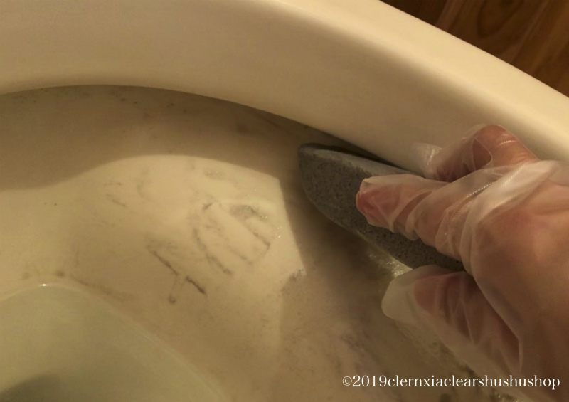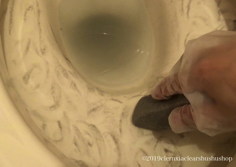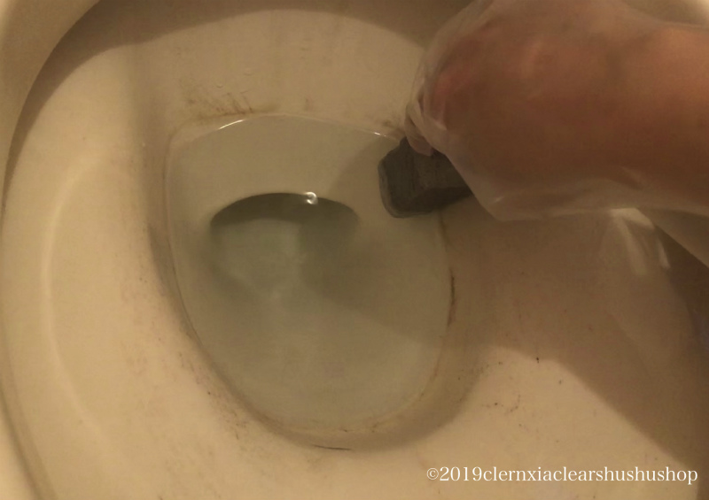 ②便器に付いた汚れの部分を消しゴムで消すようにこすっていきます。