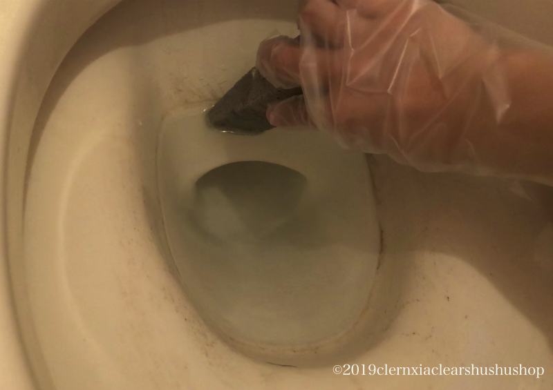 この方法は時間をかけてみると落としやすくもなりますが、家族と一緒に住んでいたら誰がいつトイレを使いたくなるかわからないので、掃除する時間帯を気にしながら掃除をするしかないです。